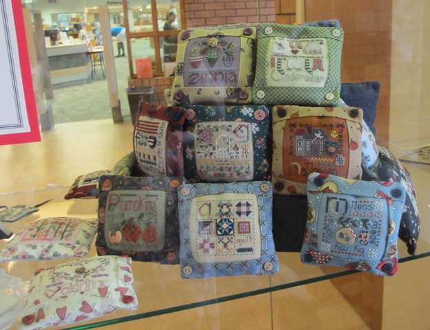 Back in January when I was able to attend a different Chapter workshop, the members were taught how to make stand-up cubes for their needlework. Many of the members have them on display in the exhibit. They did a fabulous job on their cubes!